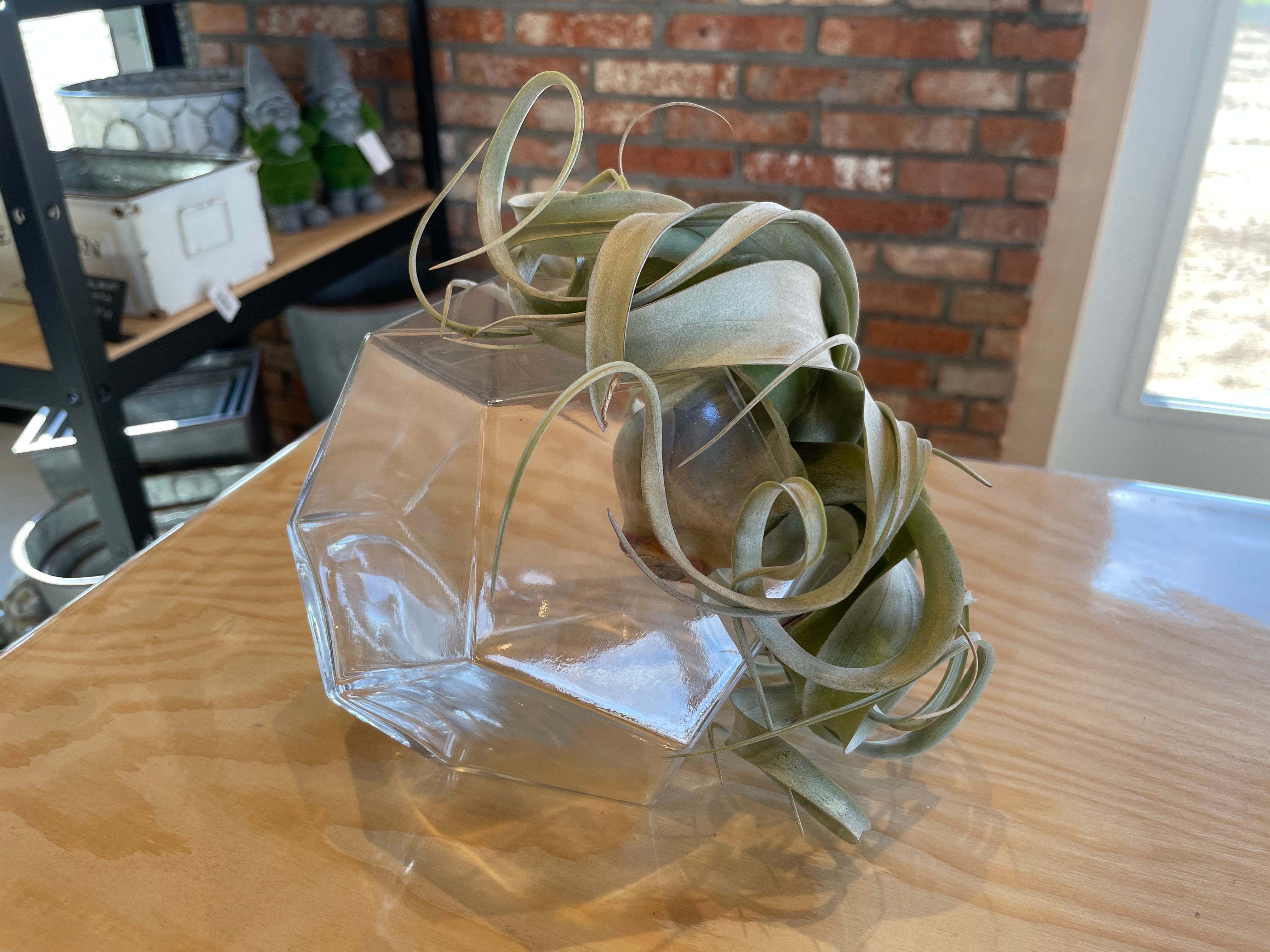 Plante aérienne dans un vase de verre en prisme.