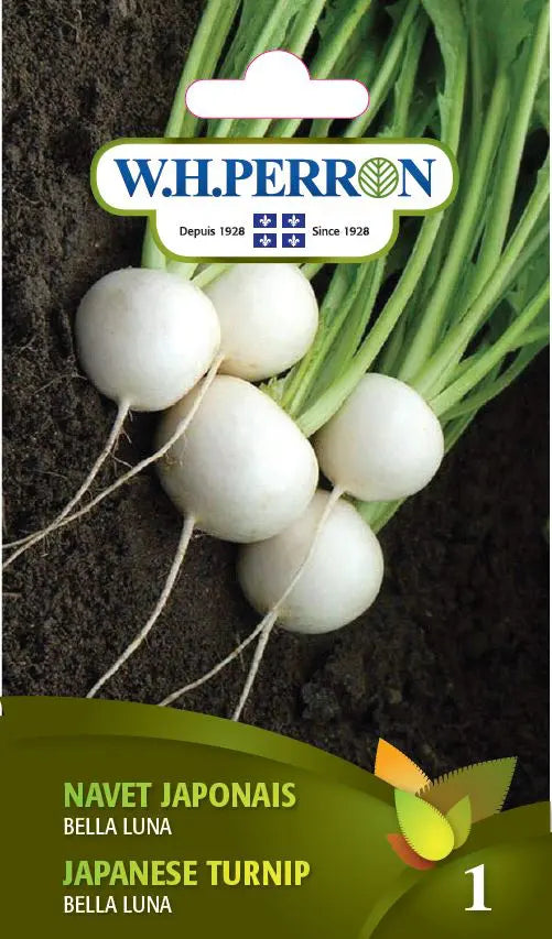 Navet japonais blanc pur, luisant, qui peut être récolté petit, mais qui peut aussi attendre au champ d’être de taille moyenne (3.5 à 6 cm). Excellente saveur même si le navet est mangé cru.
